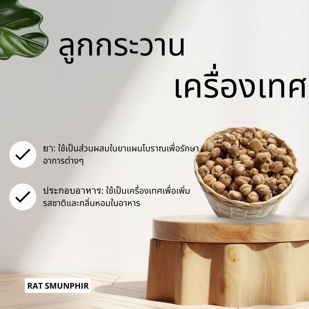 ลูกกระวาน ใช้ประกอบอาหารเพื่อดับกลิ่นคาว ช่วยเพิ่มกลิ่นหอม และเพิ่มรสเผ็ดร้อน หรือตำผสมเป็นเครื่องแกงหรือพริกแกงสำหรับใส่อาหาร