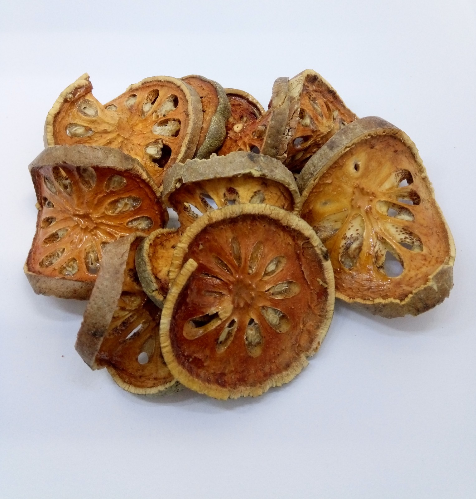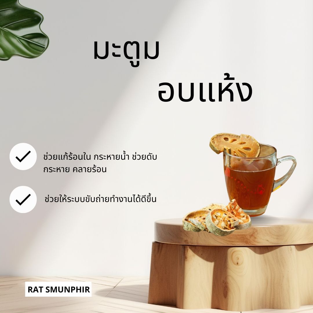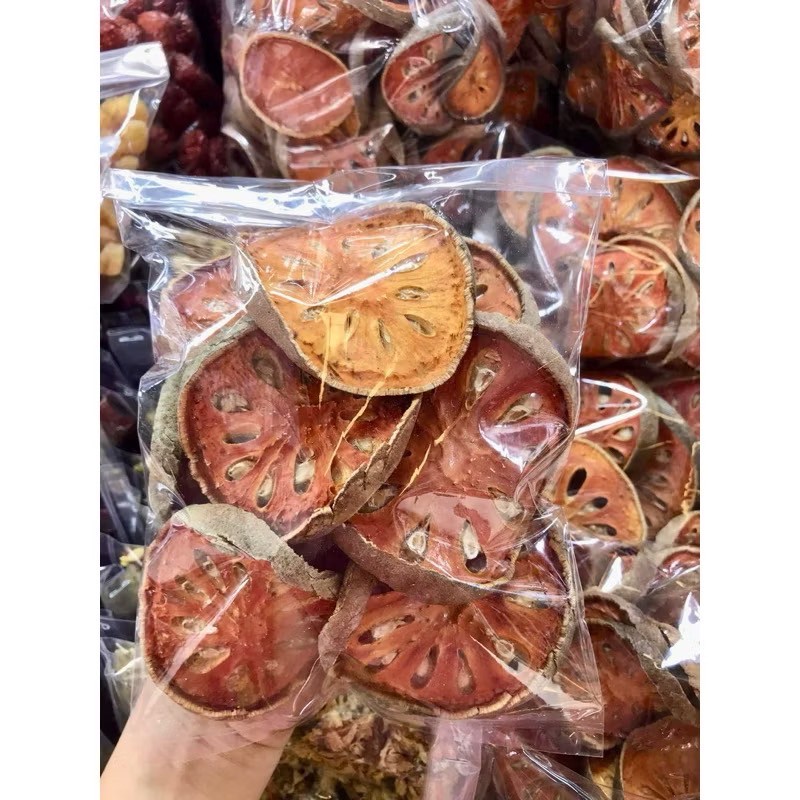 มะตูมแห้ง ทำจากลูกมะตูมที่โตเต็มไว มะตูมอ่อนหั่นตากแห้ง แห้งสนิทจะช่วยเก็บรักษาได้นานๆ